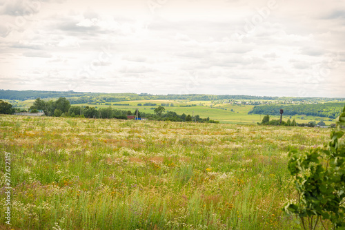 blooming uncultivated fields in Chuvashia,shot on a cloudy summer day