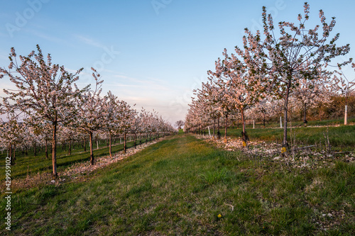 cherry, fruit farm, tree, landscape, nature, spring, sky, grass, forest, green, autumn, field, tree, road, countryside, season, rural, blue, meadow, summer, park, fall, path, country, blossom