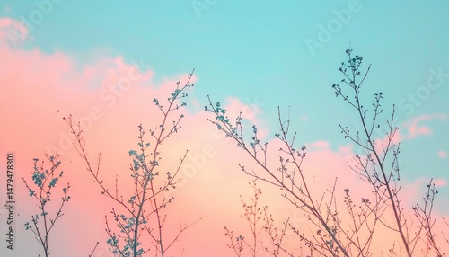 Blossoming branches against a pastel sky nature scene outdoor serene vertical perspective tranquility and beauty