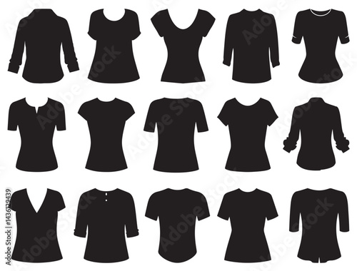 silhouette, blouse, vector, fashion, illustration, woman, clothing, clothes, shirt, set, design, female, style, dress, girl, jacket, skirt, collection, isolated, model, beauty, icon, accessory, lady, shopping, hat, textile, suit, garment, trousers, pant, wear, people, shoe, white, black, coat, graphic, young, elegance, casual attire, person, vignetting, background, clothes rack, drawing, underclothing, modern, symbol