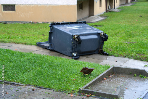 Blown away container after heavy nightly summer thunderstorm at City of Zurich. Photo taken July 13th, 2021, Zurich, Switzerland.