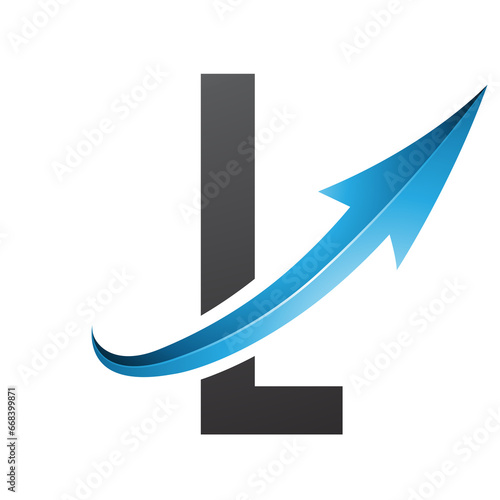 Blue and Black Futuristic Letter L Icon with a Glossy Arrow