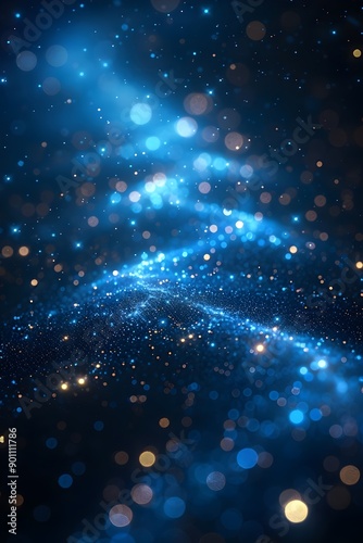 Blue and golden bokeh lights form a starry night sky, creating a mesmerizing, dreamlike effect with shimmering, out-of-focus points of light that evoke a sense of wonder and cosmic beauty.