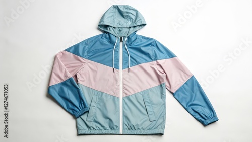 Blue and Pink Windbreaker Jacket on White Background