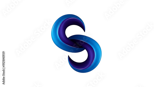 Blue and purple intertwined abstract letter S isolated on a transparent background