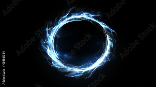 Blue and silver glowing fire flame circle ring on a black background