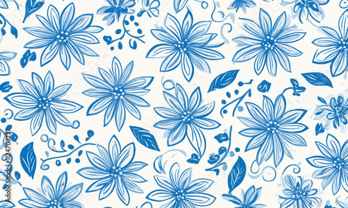 blue and white floral flower pattern