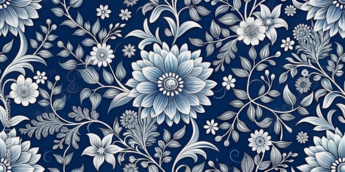 Blue and White Floral Pattern, Seamless, Botanical, Graphic, Blue, White, Flowers