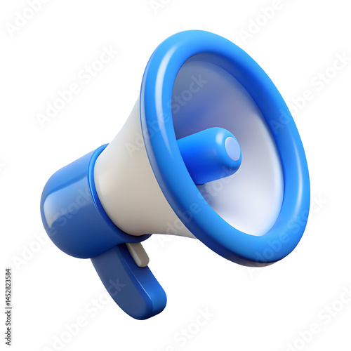 megaphone, announcement, icon, promotion, marketing, communication, loudspeaker, bullhorn, design, blue, white, speaker, voice, sound, volume, advertise, alert, broadcast, attention, public, news, information, shout, message, loud, three-dimensional, announce, amplifier, audio, speech, talk, object, microphone, talking, equipment, device