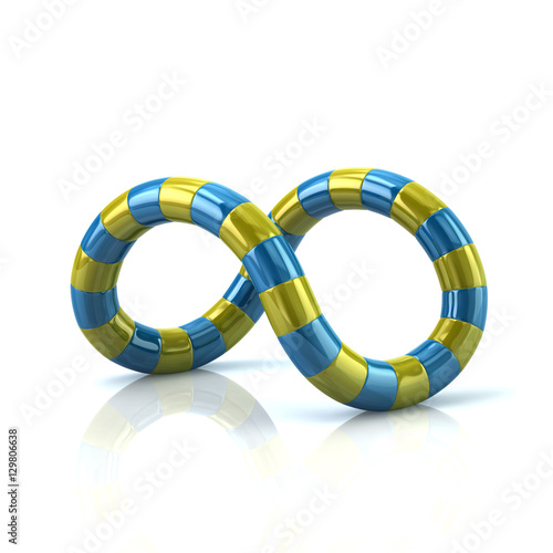 Blue and yellow infinity symbol 3d rendering