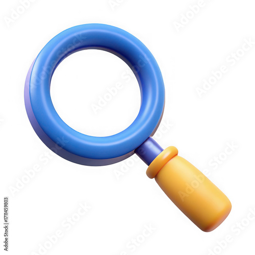 magnifying glass, toy, children, play, search, explore, discovery, investigation, curiosity, education, learning, children, object, tool, magnifier, lens, handle, plastic, bright, colourful, blue, yellow, simple, clean, isolated, studio shot, cut-out, graphic, icon, element, design, concept, idea, imagination, fun, white background, isolated object, single object