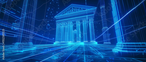 Blue background with digital glowing lines and holographic images for the campaign running