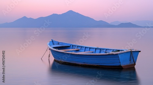 boat, lake, mountain, calm, water, scenic, blue, landscape, dinghy, sea, dusk, evening, nature, peaceful, tranquil, horizon, sky, pink, serene, purple, twilight, stillness, solitude, ripple, travel, vacation, adventure, summer, outdoors, tour tourism, environment, coast, shore, vessel, bay, river, panorama, view, nautical, transportation, floating, quiet, light, picturesque, background