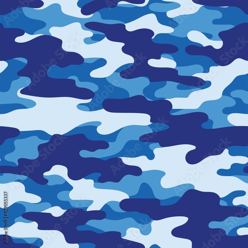 blue Camouflage seamless pattern.Military camo.Print Vector