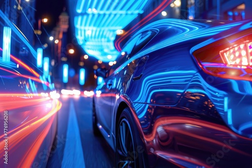 light, speed, line, blue, background, car, abstract, trail, technology, fast, ray, white, black, road, motion, flash, futuristic, headlamp, bridge, night, automotive, movement, design, way