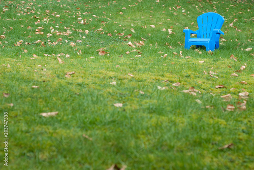 Blue chair on lawn