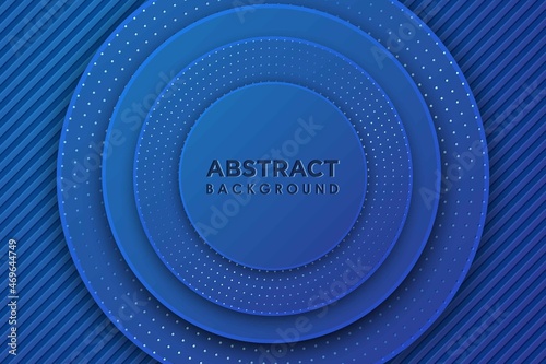 Blue circle geometric tiles textured with white shiny patterns. Modern cover design. Vector illustration. Ad banner. Abstract background. Minimal composition with hex shapes. Layout design