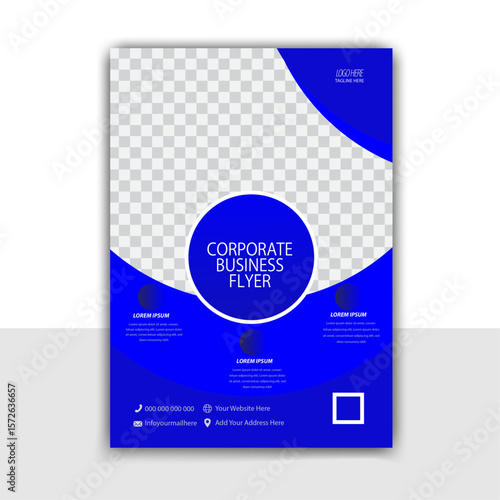 Blue Corporate Flyer Template with Round Photo Placeholder and Clean Business Layout Design