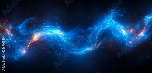 Blue cosmic wave in space. A radiant blue wave flows through the darkness of space, illuminated by glowing stars and swirling energy.