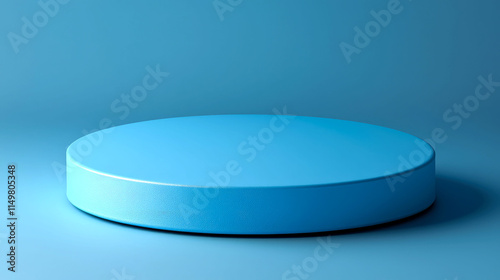 Blue cylindrical platform on blue background.
