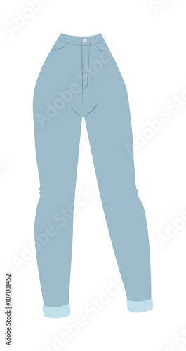 Blue denim women's jeans glamour clothing style casual fabric flat pants vector illustration.