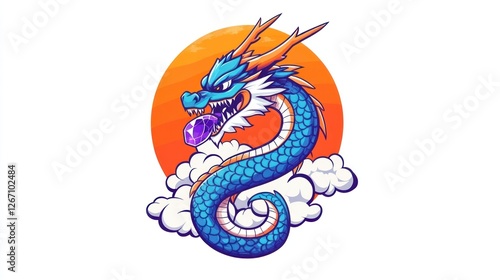 dragon, cloud, gem, fantasy, sun, illustration, blue, mythical, coil, radiant, mythology, animal, creature, snake, sky, asia, beast, chinese, cartoon, oriental, japanese, tale, fairy tale, mascot, vector, artwork, drawing, monster, design, background, graphic, ancient, art, legend, reptile, magical, traditional, spirituality, luck, culture, fire, nature, horoscope, symbol, spirit