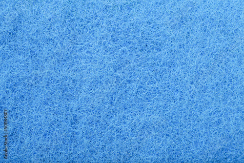 Blue fiber polishing pads textured background, Texture of a abrasive scourer dishwashing sponge. Background of a scrub cleaning sponge close up.