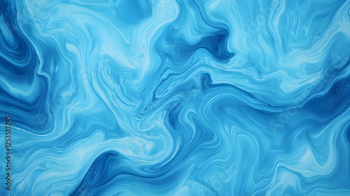 Blue fluid art background for posters, banners. Abstract swirls of white and different blues blend together like water or marble texture