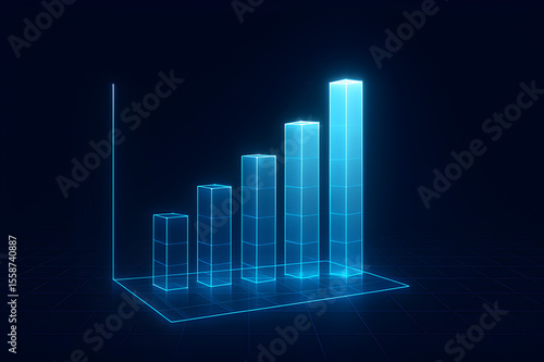 Blue Futuristic Tech Circuit Board Bar Graph with black background showing an increase - for business and corporate use.