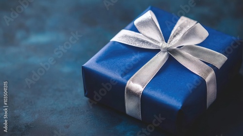gift, present, box, ribbon, blue, silver, wrapping, package, festive, decorative, celebration, surprise, elegant, neat, holiday, birthday, anniversary, christmas, special, occasion, ornate, posh, taped, shiny, new, attractive, container, wrapped, prepared, thoughtful, luxurious, beautiful, adornment, metallic, texture, stylish, classic, sophisticated, ornamental, background, copy space