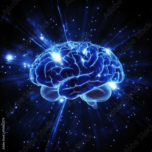 Blue glowing brain bursts with energy