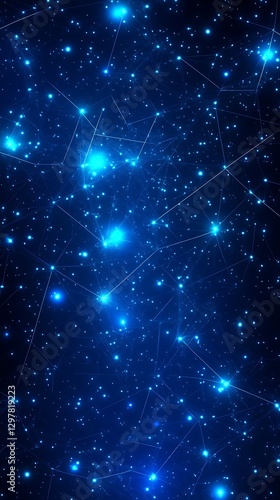 Blue Glowing Stars in Night Sky Background
