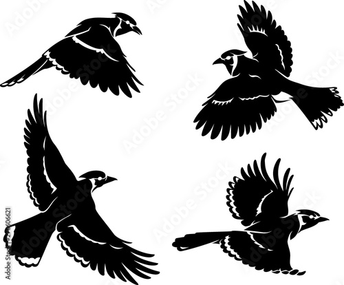 bird, silhouette, wing, illustration, black, animal, flying, wing, tattoo, fly, white, nature, bird, vector, flight, crow, wildlife, design, art, feather, symbol, isolated, set, collection, beak, composition, freedom, half face