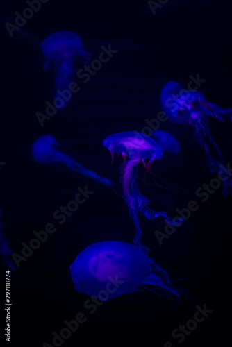 jellyfish, blue, bunch, swimming, animal, animal, aquarium, aquatic, beautiful, bite, colours, colourful, colours, colours, colourful, colours, contrast, creature, creature, danger, dangerous, marine life, ocean, bell, floating, japan, life, marin, medusa, nature, pacific, sea, water, white, background, closeup