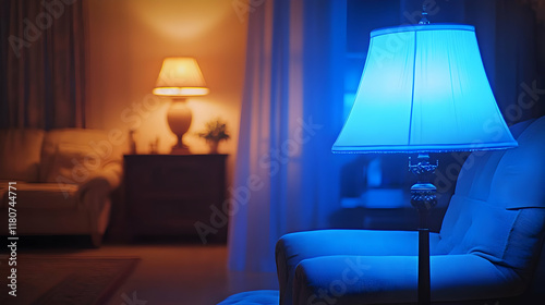 blue, digital artwork, warm tones, home decor, lamp, interior design, room, interior, lighting, apartment, blue light, house, contrast, calm, bokeh, comfort, table, home, teal, evening, furniture, cosy, armchair, ambience, serene, design, night, contemporary, peaceful, night scene, warm light, living room, background, artwork, shadow, illustration, modern, soft light, depth of field, tranquil, relaxing
