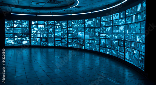 Blue Monochrome Wall of Screens Displaying Digital Abstract Pattern Background