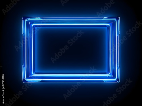 Blue Neon Frame Sign Template: Realistic Glowing Signboard Design for Modern and Vibrant Displays
