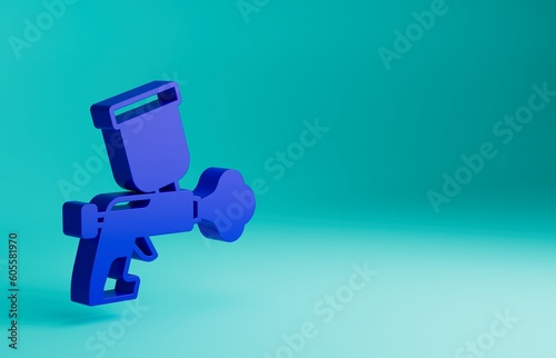 Blue Paint spray gun icon isolated on blue background. Minimalism concept. 3D render illustration