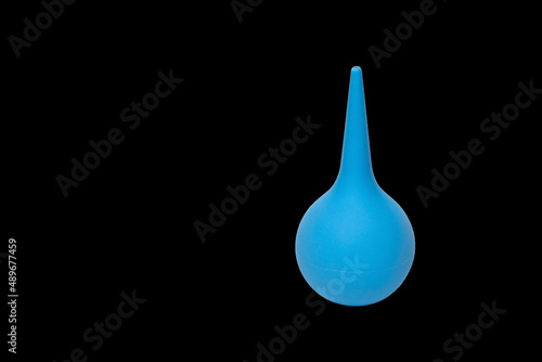 blue, pear, syringe, closeup, isolate, rubber, dust, water, air, rinse, blow, suction, worked, isolated, black, black background