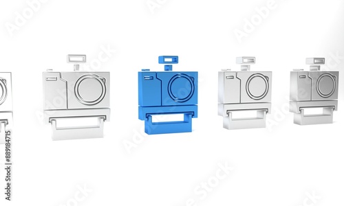 Blue Photo camera icon isolated on white background. Foto camera icon. Minimalism concept. 3D render illustration
