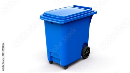 Blue Recycling Bin with Cover Isolated on White Background for Reusing and Recycling of Garbage and Waste. Plastic Container Trash Box Can