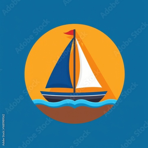 Blue sailboat icon, flat design style, nautical symbol, vector illustration, blue, illustration, transport