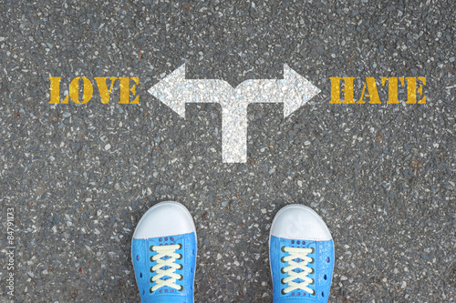 shoe, top, flat, foot, view, road, standing, decision, success, direction, start, step, design, shoe, journey, street, concept, change, first, go, man, new, life, ahead, signs, pavement, symbol, way, guide, foot, people, abstract, business, making, pair, beginning, stop, path, wait, choice, crossroad, future, walk, choose, love, hate