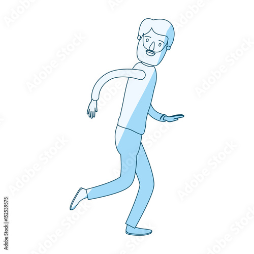 blue silhouette shading cartoon full body man with beard and moustache running vector illustration