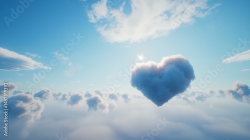 Blue sky and white clouds on the horizon, strange heart-shaped clouds