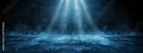 Blue Smoke and Spotlights on Stage Creating Mysterious Dramatic Scene
