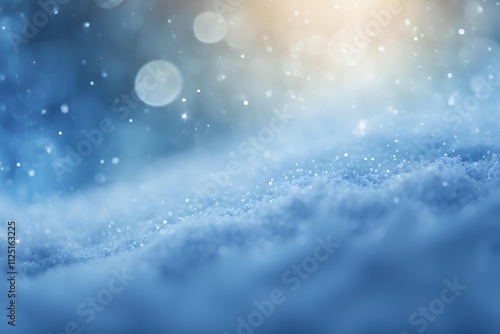 blue snow background abstract blurred, Snowflakes Falling Against a Soft Blue Background