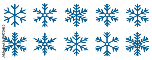 Blue snowflake icons collection isolated on white background. New year design elements, frozen symbol, Vector illustration