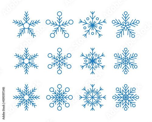 snowflake, snow, flake, christmas, symbol, icon, winter, snowfall, christmas, ice, frost, vector, set, line, outline, 5, 6, 8, collection, holiday, element, ornament, graphic, contour, snowflake, design, shape, flat, crystal, isolated, season, decoration, art, blue, glacé, abstract, geometric, illustration, new, year, weather, storm, temperature, cold, december, icy, snowy