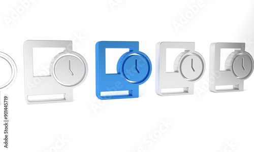 Blue Time for book icon isolated on white background. Minimalism concept. 3D render illustration